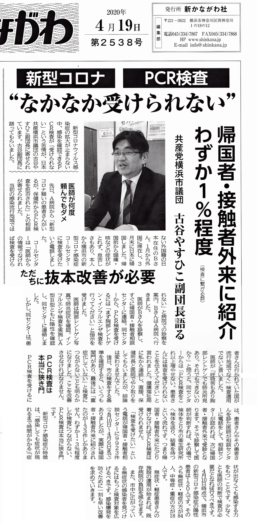 (C)赤旗新聞日刊紙 2020年4月18日