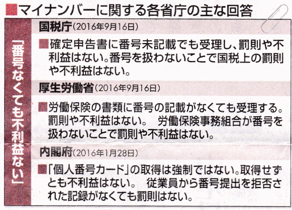 しかし、国税省は「確定申告書は番号未記載でも受理する。不利益や罰則はない」とのことです。