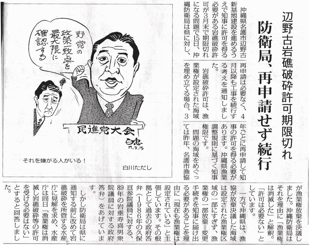 ★辺野古 岩礁破砕(がんしょうはさい)許可期限切れ