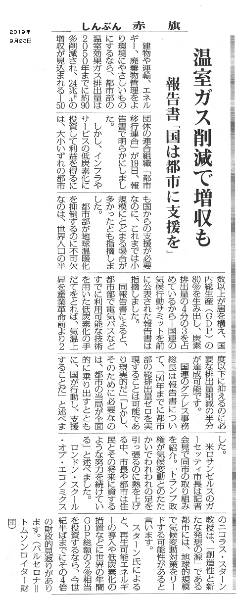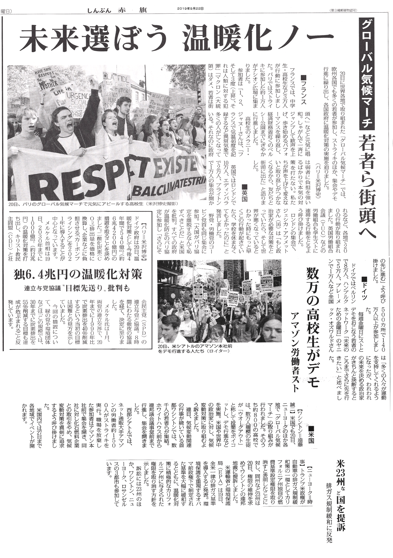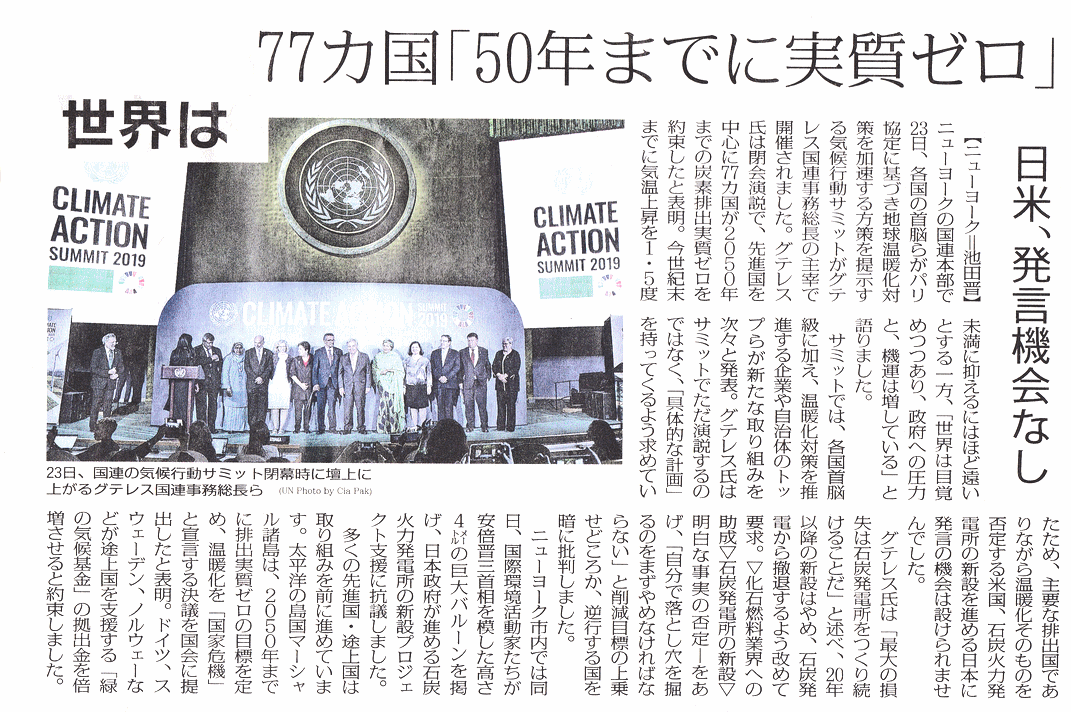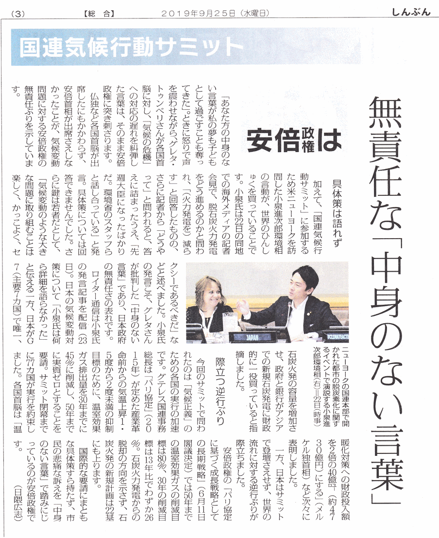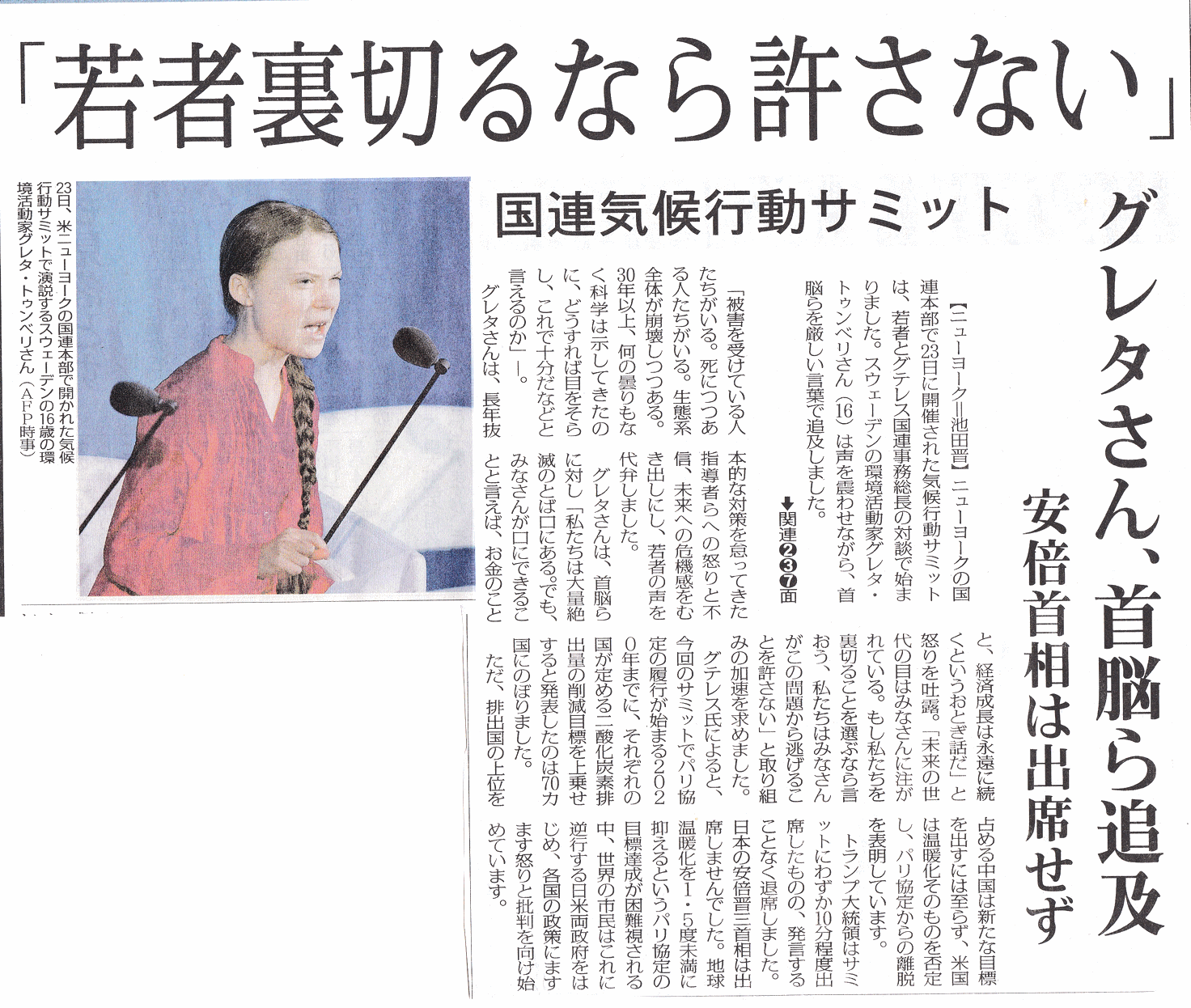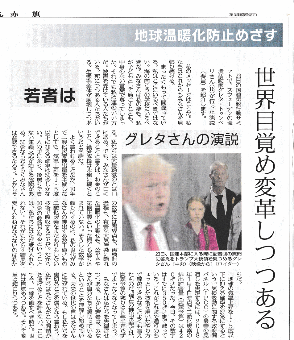 (c)赤旗新聞 9月25日 グレタさんの演説