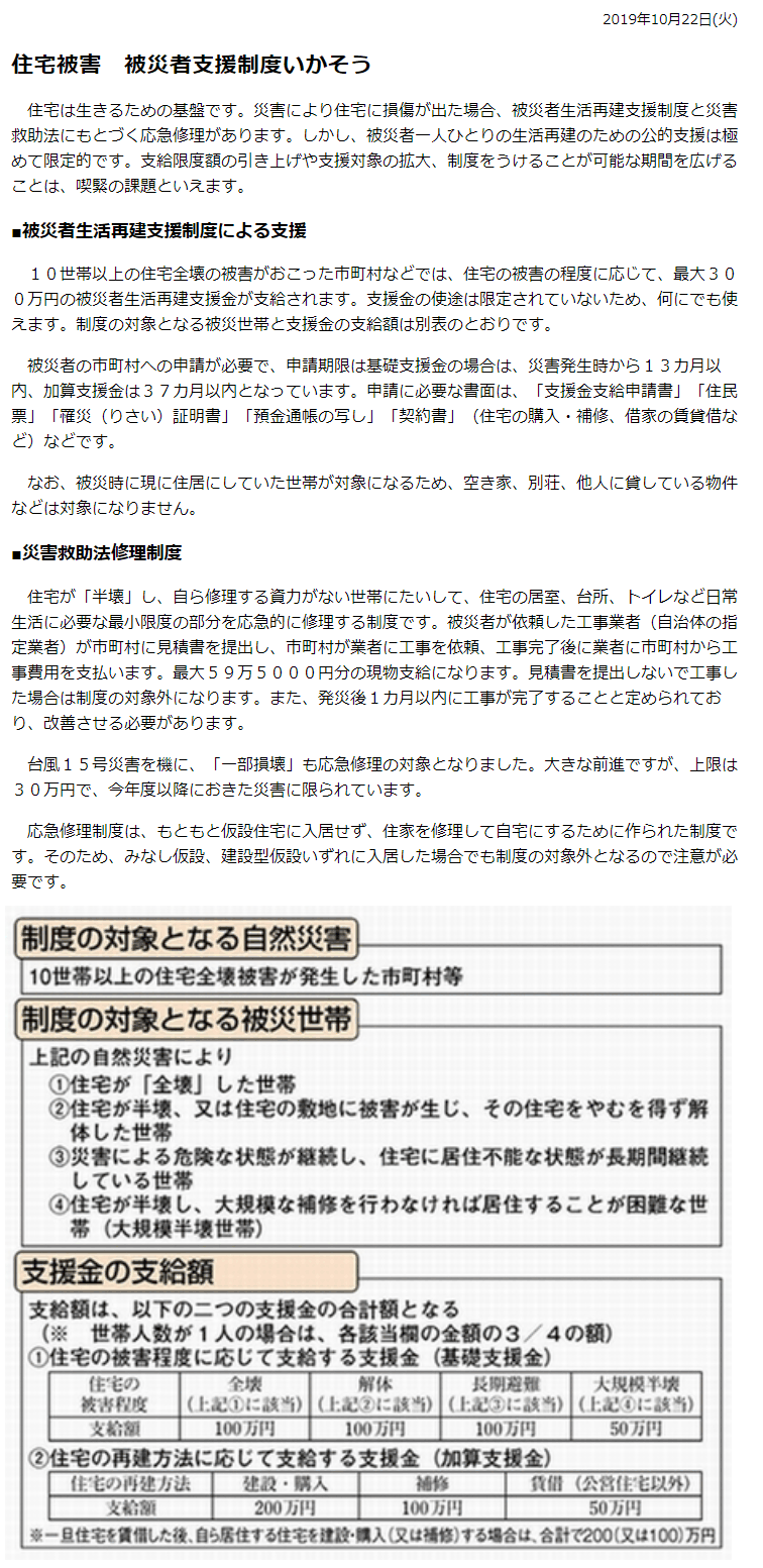 ★住宅被害の被災者支援制度についての紹介