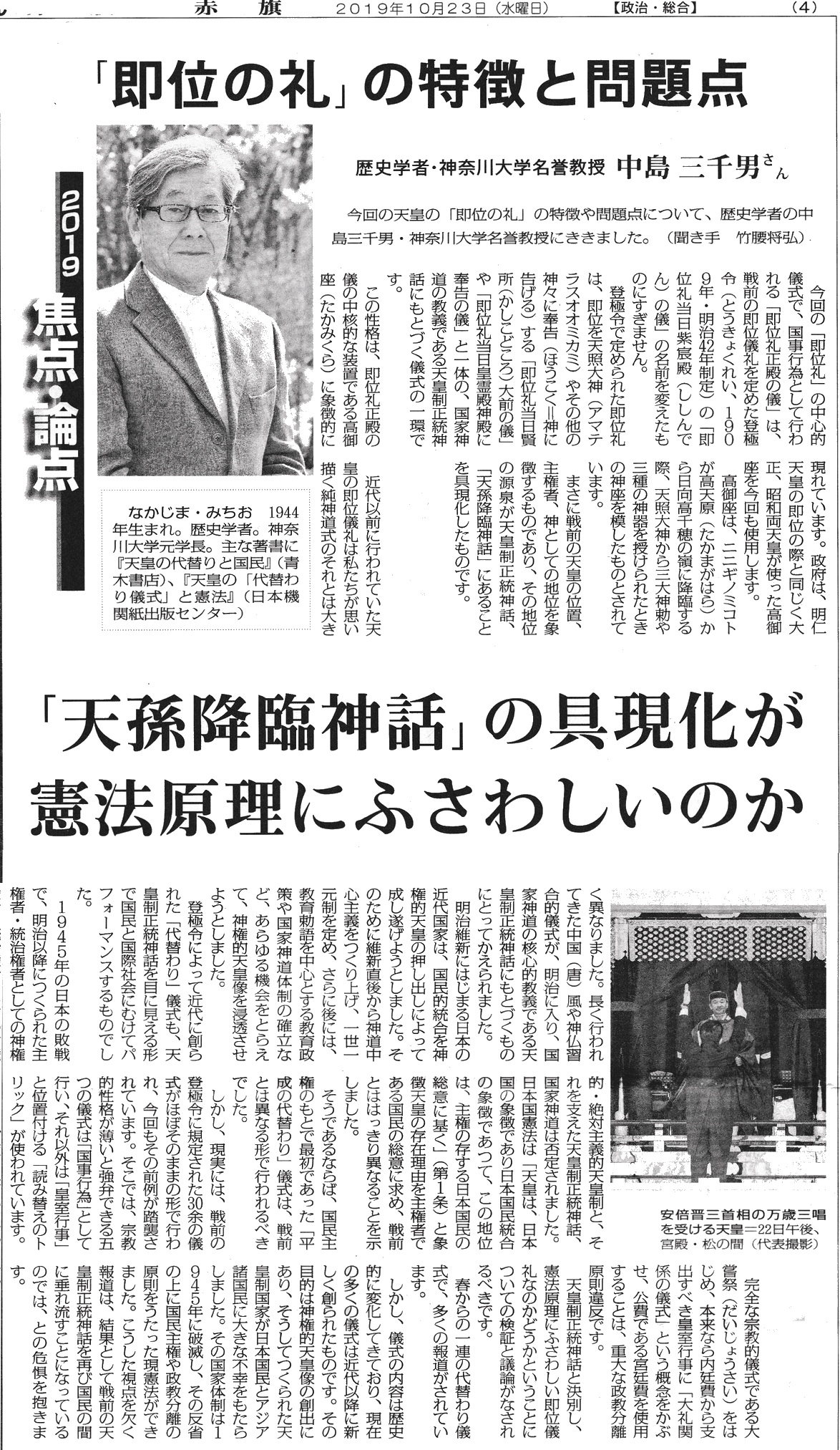 ★即位の礼」儀礼 憲法に抵触