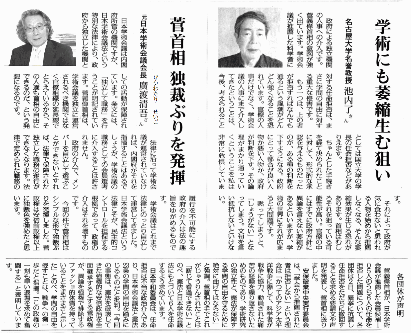 日本学術会議の会員を自分のいいなりになるメンバーにしていき、学問に介入していこうとしています。
