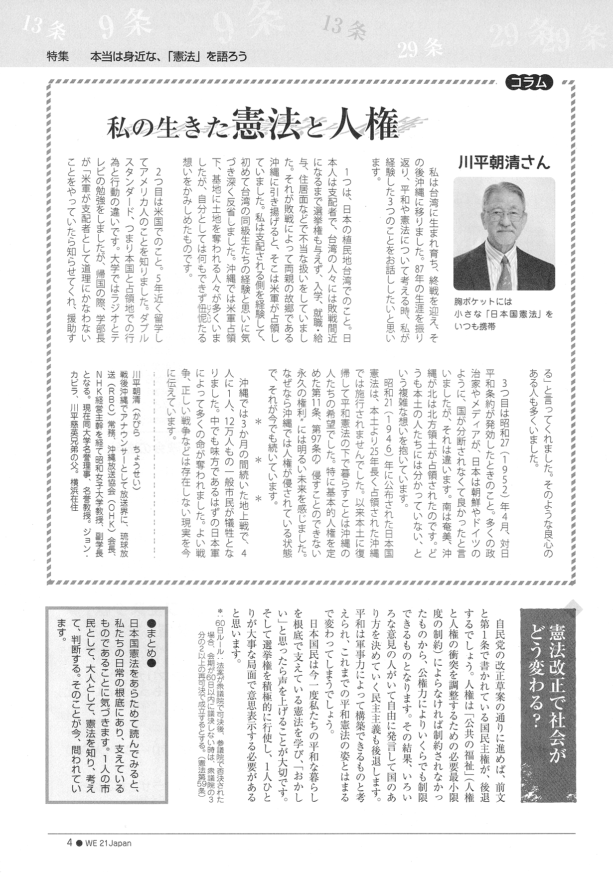 We21ジャパンのニュースNo74で、憲法改正草案の紹介をしていました。