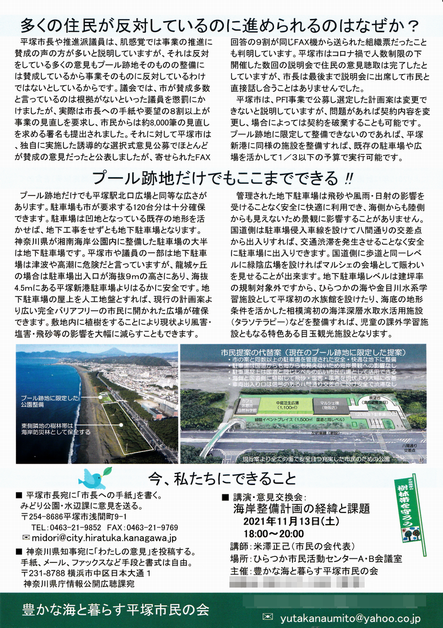 (豊かな海と暮らす平塚市民の会様情報提供。ありがとうございました。)