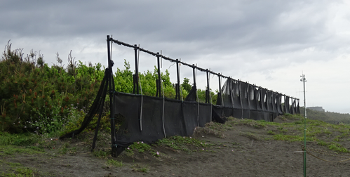 強風を防ぎ、飛砂や塩を捕らえてくれる樹林帯を切り、砂防ネット+盛り土(土手)では、飛砂・塩害の生活被害は防げません。公園に見晴らしの良いテラスを設けても冬は寒く、樹林帯が無ければ夏炎天下にさらされ、強風と飛砂に顔をたたきつけられ、くつろげません。ヾ(>▽<)o