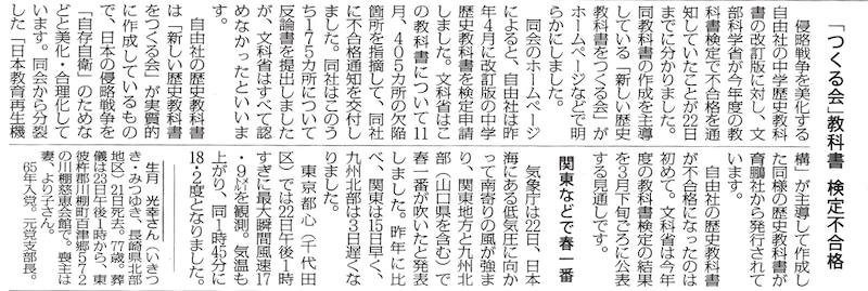 2021年度の中学校教科書は、侵略戦争を美化した自由社の教科書改訂版が不合格となりました。